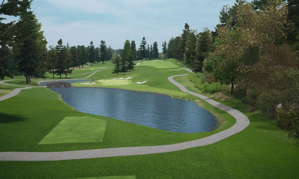 Hole 3 is a mid-length par 3 over the course’s most prominent water hazard — favor the right side away from trouble and you might get a friendly bounce toward the green.